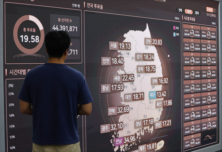 호남 지역의 경우 20대 대선 때(전남 28.11%·전북 25.54%·광주 24.09%) 대비 전부 투표율이 올랐다.반면에 '보수 텃밭'으로 불리는 TK 지역을 보면 경북은 20.99%에서 16.92%로 4.07%p 줄었고, 대구는 15.43%에서 13.42%로 2.01%p 줄었다.선거의 최대 격전지이자 민심의 바로미터로 꼽히는 수도권도 20%대를 넘지는 못했다.