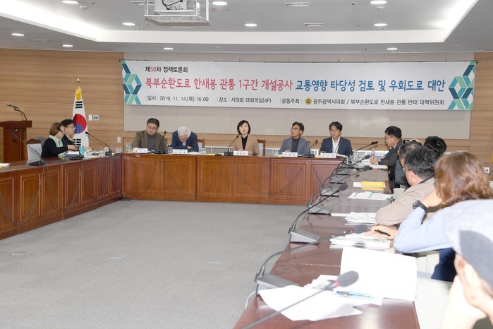 [광주=세계타임즈 손권일 기자] 광주광역시의회는 11월14일 오후4시 시의회 4층 대회의실에서 장연주 의원을 좌장으로 북부순환도로 한새봉 관통 1구간 개설공사 교통영향 타당성 검토 및 우회도로에 대한 토론회를 가졌다.