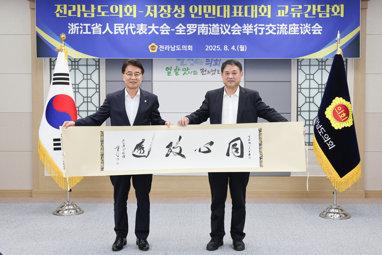 [전남 세계타임즈=우덕현 기자] 전라남도의회(의장 김태균)는 4일 오후 도의회에서 중국 저장성 인민대표대회 대표단을 공식 접견하고, 양 지역 지방의회 간 우호 교류 및 협력 확대 방안을 논의했다.
