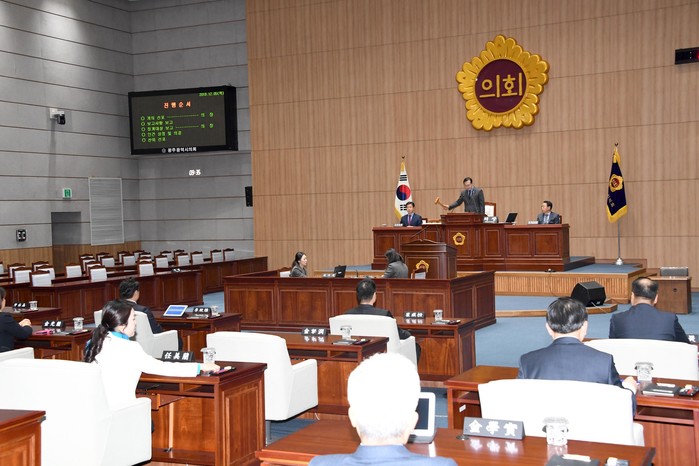 [광주=세계타임즈 손권일 기자] 광주광역시의회(의장 김동찬)는 5일 오전9시30분 시의회 4층 본회의장에서 제284회 제2차정례회 제4차 본회의를 열고 윤리특별위원회 위원 선임의 건을 상정했다.