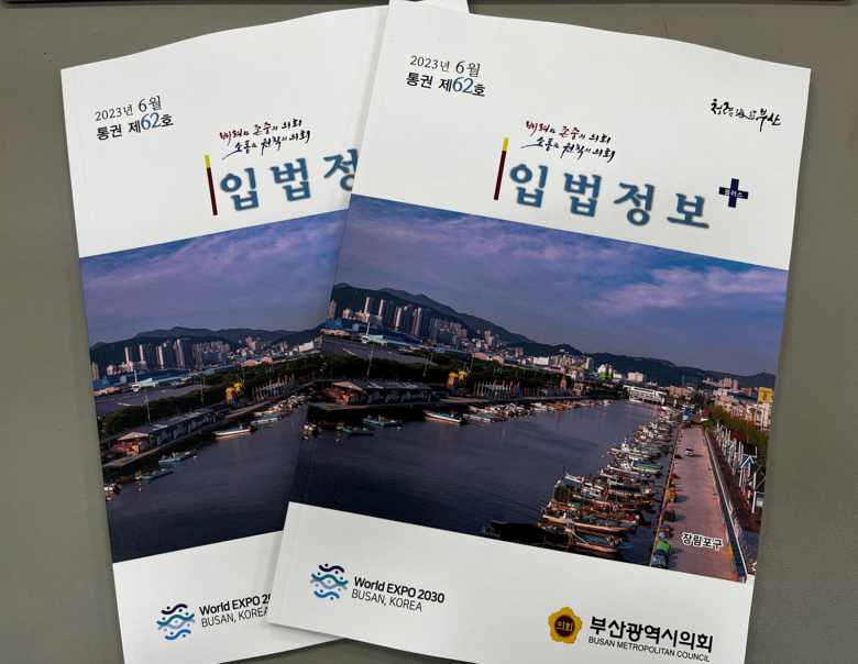 [부산 세계타임즈=이용우 기자] 부산광역시의회(의장 안성민)는 6월 28일 「입법정보 플러스」(제62호)를 발간.배포했다.