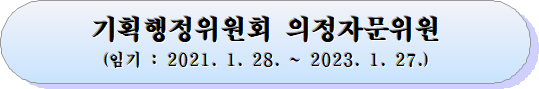 기획행정위원회는 ‘대구광역시 의회 의정 자문에 관한 조례’에 근거하여 7개 분야 11명(자치 2, 행정 3, 입법 1, 경영 1, 교육 2, 정보화 1, 회계 1)의 전문가를 의정자문위원으로 위촉하였으며, 향후 2년간 소관 주요현안 및 의정활동에 대한 정책적 자문을 받을 계획이다.