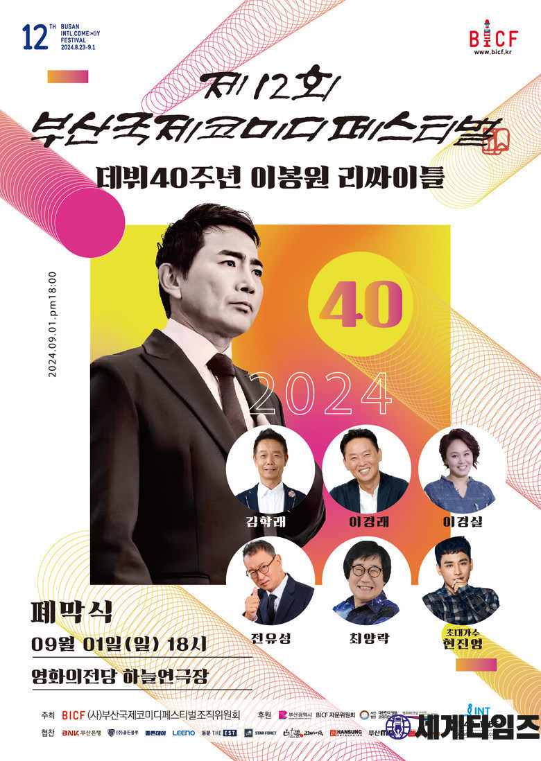오는 9월 1일(일) 저녁 6시 영화의전당 하늘연극장에서 열리는 제12회 ‘부산국제코미디페스티벌(BICF)’(이하 ‘부코페’) 폐막식에서는 이봉원 데뷔 40주년 리싸이틀 쇼가 펼쳐진다. 대한민국 코미디계의 레전드라고 할 수 있는 이봉원은 그간의 코미디 인생을 총망라한 리싸이틀 쇼를 준비, 관객들 앞에 나선다.