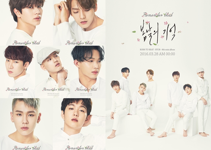 소속사 큐브엔터테인먼트는 21일 “비투비가 오는 28일 0시 미니 8집 음반 ‘리멤버 댓(Remember that)’을 발표, 발라드 타이틀 곡 ‘봄날의 기억’으로 컴백한다”고 밝혔다.