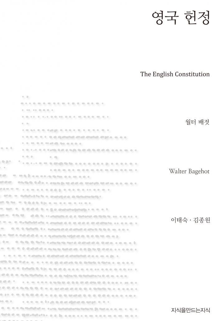 이 책은 민주주의를 성공적으로 발전시키는 데 고려할 필수 사항들, 즉 대통령제와 내각제의 대비, 의회 작동에서 관건이 되는 요소들, 여론과 언론의 기능, 국민의 정치의식과 정치제도의 관계 등을 논의한다. 지식을 만드는 지식. 2만8000원.'영국 헌정' 표지.<사진제공=지식을 만드는 지식>