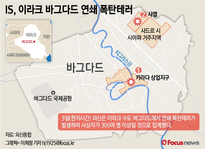 (서울=포커스뉴스) 지난 3일(이하 현지시간) 이라크 바그다드에서 발생한 자살 폭탄 테러 사망자가 200여명을 넘어섰다.