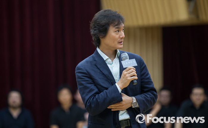 (서울=포커스뉴스) 7일 오후 서울 종로구 세종문화회관에서 열린 오페라 '도요새의 강' 제작발표회에 참석한 이경재 연출이 인사말을 하고 있다.