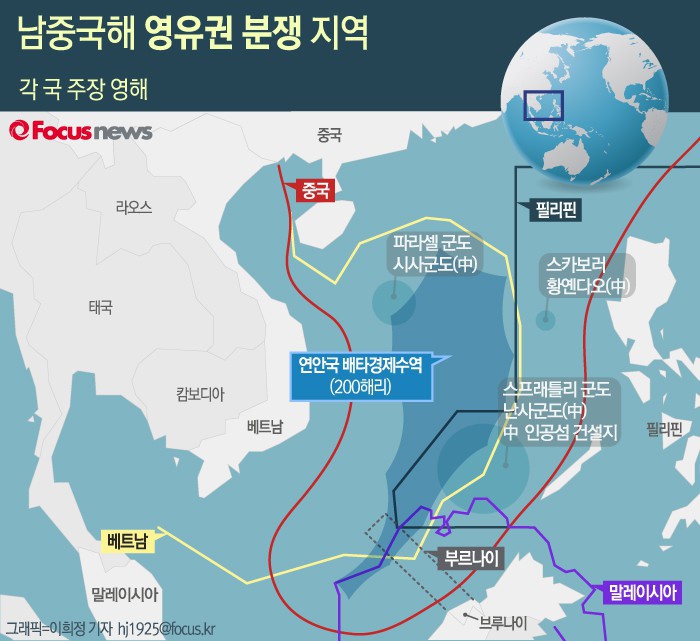 (서울=포커스뉴스) 중국과 필리핀의 남중국해 영유권 분쟁에 대해 국제 분쟁 조정 기구인 상설중재재판소(PCA)가 필리핀의 손을 들어줬다.