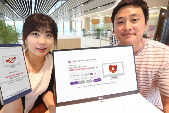 장상규 LG유플러스 홈기획관리담당은 “단순 회선 제공 서비스였던 인터넷을 탈피해 안심하고 이용할 수 있는 가정의 인터넷 이용환경을 만드는데 초점을 맞췄다”며 “가정 내에서 이용하는 PC와 모바일의 악성코드 및 유해사이트 접속을 차단함으로써 차별화된 인터넷 환경을 경험할 수 있을 것”이라고 말했다.LG유플러스가 인터넷 신규가입 고객에 악성코드와 유해사이트 차단 프로그램을 제공한다.<사진제공=LG유플러스>