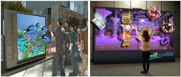 평창에서 구현될 기술‧서비스를 다양한 국내외 행사를 통해 시연‧체험해 볼 수 있는 기회를 지속적으로 제공함으로써 국내 관련산업의 경쟁력 강화에도 노력할 계획이다.평창홍보과에서 선보이는 증강현실 피팅(위)와 초다시점 무안경 3D 입체영상 체험.<사진제공=미래부>