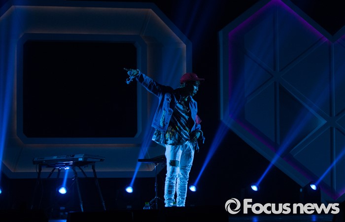 (서울=포커스뉴스) 8일 오후 서울 광진구 예스24 라이브홀에서 가수 준케이가 첫 솔로 미니앨범 쇼케이스를 열고 무대를 선보이고 있다.