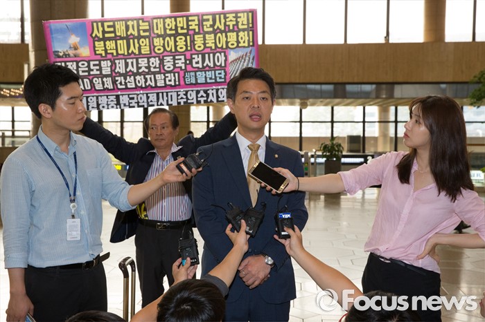 한편, 더민주 소속 의원단은 10일 일정을 끝으로 방중 일정을 마무리한다.더불어민주당 사드대책위 간사인 김영호 의원이 사드 배치와 관련한 중국 방문 일정을 위해 8일 오전 서울 강서구 김포공항에서 출국 전 취재진의 질문에 답하는 도중 한 시민단체 회원의 피켓 항의를 받고 있다. 김 의원을 비롯해 김병욱·박정·소병훈·손혜원·신동근 의원 등 초선의원 6명은 8일부터 2박 3일간 중국에 머문 뒤 10일 귀국한다. 2016.08.08 허란 기자