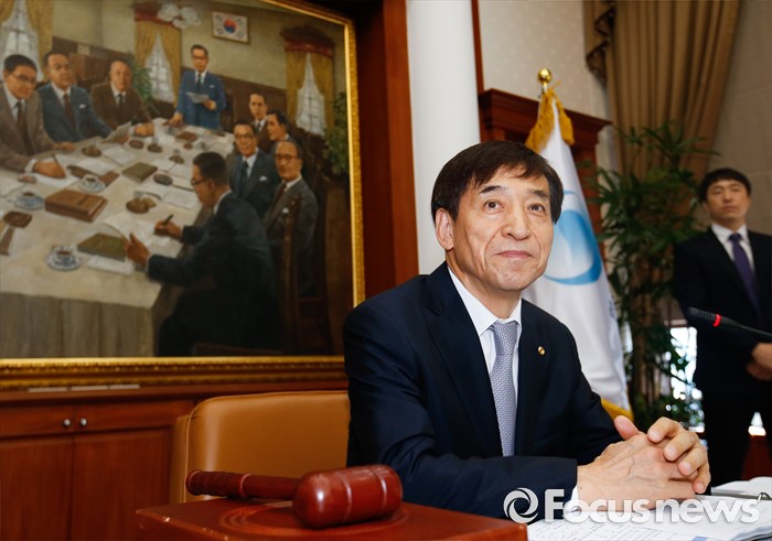 (서울=포커스뉴스) 11일 오전 서울 중구 한국은행에서 열린 제15차 금융통화위원회에 참석한 이주열 한국은행 총재가 회의 시작 전 취재진을 바라보고 있다.
